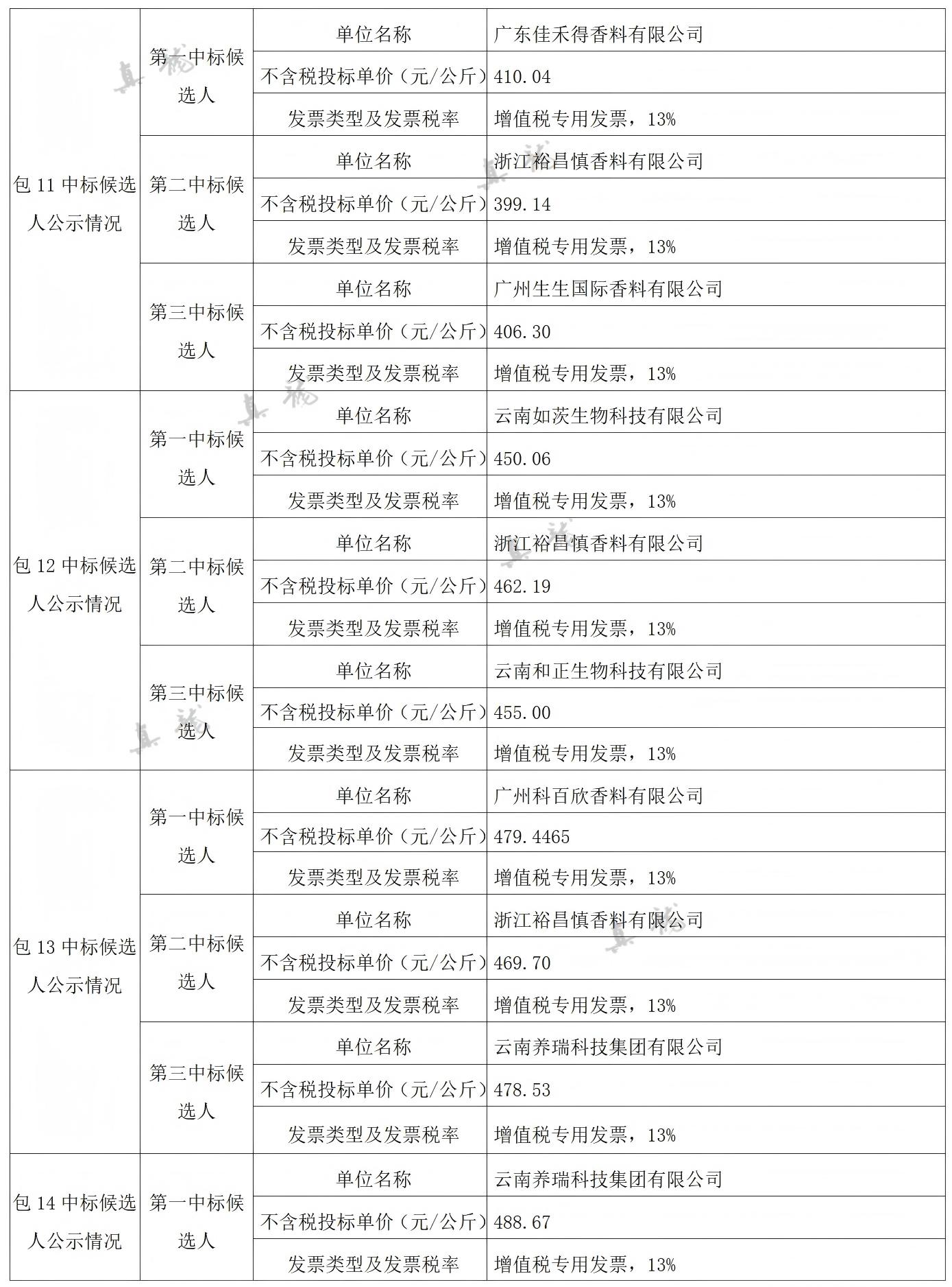 廣西中煙工業有限責任公司2026-2028年自主品牌香精香料采購之復合體采購第一批(項目編號:B202501BA2001767947560)中標候選人公示